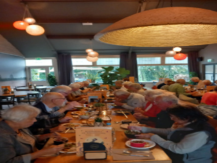 Om 17.00 uur begonnen we aan de terugreis naar restaurant “De Waldhoorn” in Otterlo, waar we verwacht werden voor het diner. Het stoofpotje “Pannegies” en de “Parpadelle” maaltijd hebben goed gesmaakt en na het toetje zijn we opgestapt, zodat we rond 21.00 uur weer konden worden afgeleverd bij de Dubbelbeek.