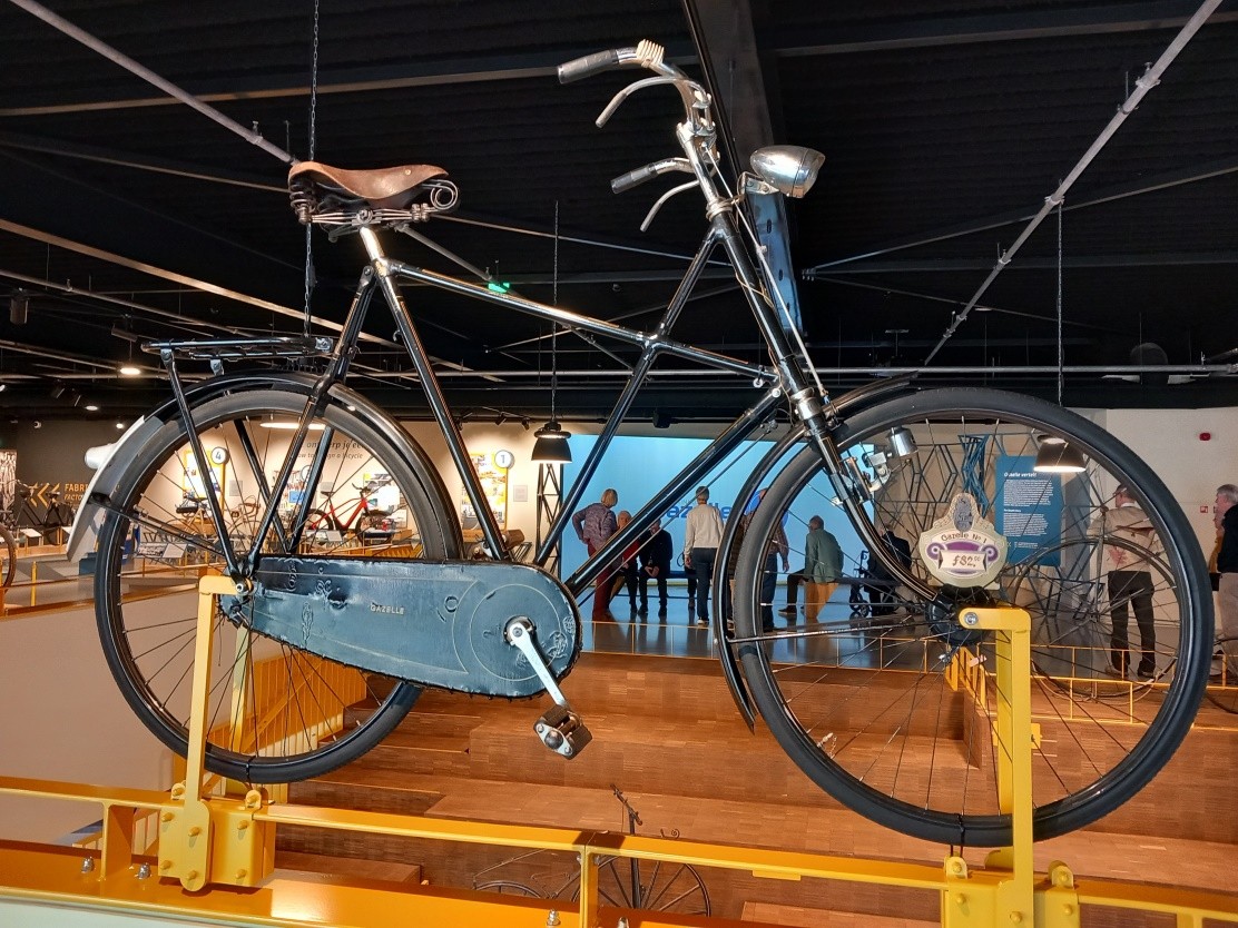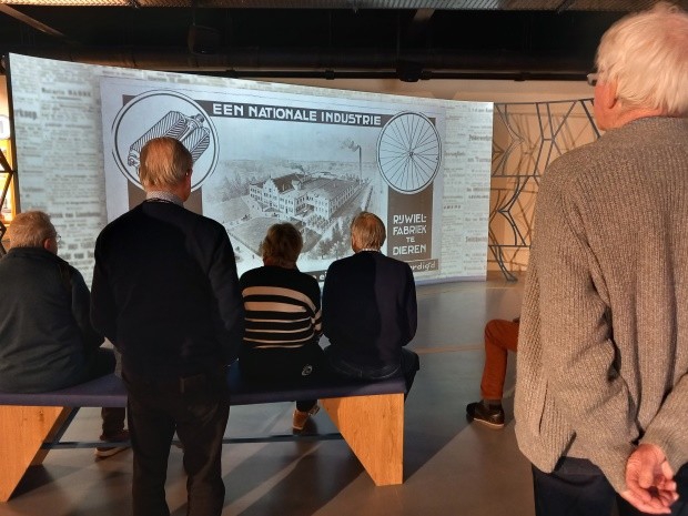 Op 8 april waren 35 leden naar de Gazelle fabriek in Dieren gekomen. We werden daar vriendelijk ontvangen en er werden audiotour apparaten aan ons uit gereikt. De eerste groep ging naar boven om een film over de geschiedenis en de oprichting van de fabriek te kijken. De vrienden Willem Kolling en Rudolf Arentsen begonnen in 1892 een rijwielhandel die uitgroeit tot het enige Nederlandse fietsmerk, dat het predicaat koninklijk mag voeren. Deze vrienden hebben voor de naam van de fietsen “Gazelle” gekozen, omdat zij destijds veel herten zagen rennen in de Veluwse bossen.